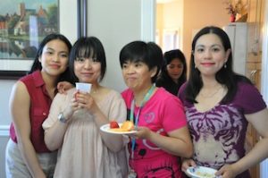 親戚・知人が沢山集まり、美味しい食事とケーキ…パーティーに参加と言う事で忘れる事の出来ないホームステイ初日になりました。